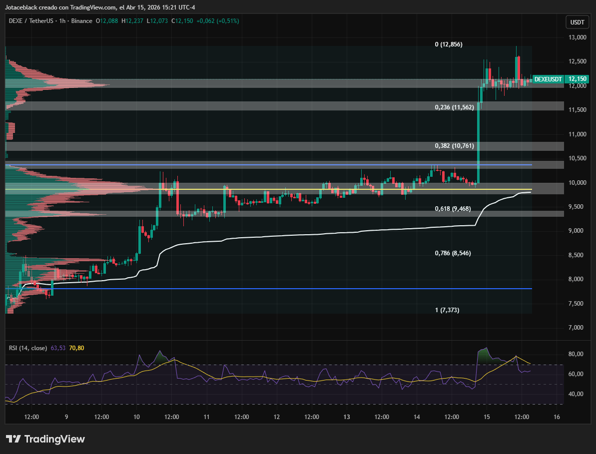 El par $DEXE/$USDT en temporalidad 1H mantiene una estructura claramente alcista tras el impulso que lo llevó desde la zona de $10 hasta los $12, donde ahora se encuentra en fase de consolidación.