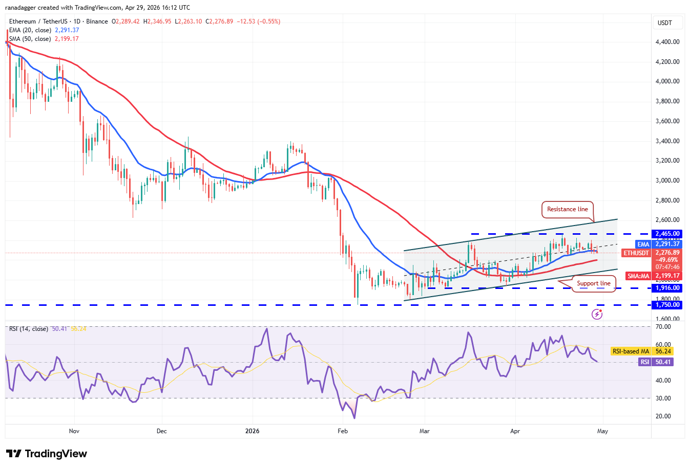 Gráfico de velas diarias del par $ETH/$USDT. Fuente: Cointelegraph/TradingView