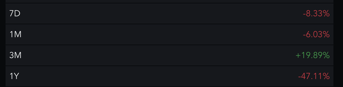 Según Messari, por ejemplo, en el momento de escribir este artículo, $BTC ofrecía ROI negativos de -6 % y -47 % en un período de 1 meses y 1 año, respectivamente.
