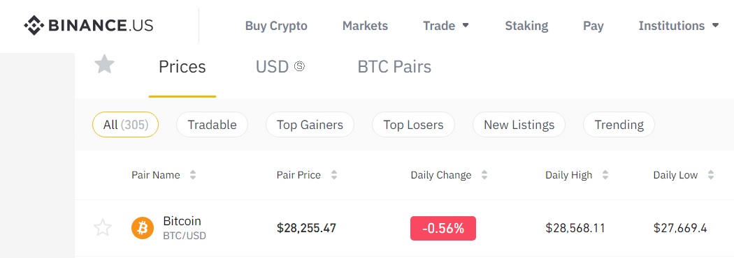 El precio de Bitcoin en Binance.US llegó por encima de USD $28.500, mientras en el resto de los intercambios cambia de manos por debajo de USD $28.000.