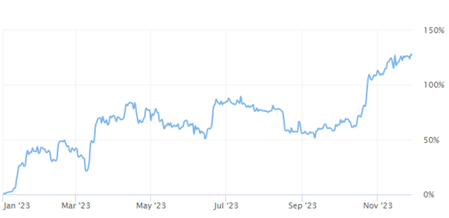 En lo que respecta a la moneda digital pionera, esta posee un contundente 127.87% de rendimiento en lo que va de 2023. Así, desde los $16.700 dólares en enero, ahora cambia de manos con $37.904 dólares por moneda. Esto habla de una poderosa capacidad de apreciación, a pesar de no ser este el año más positivo para la cripto pionera.