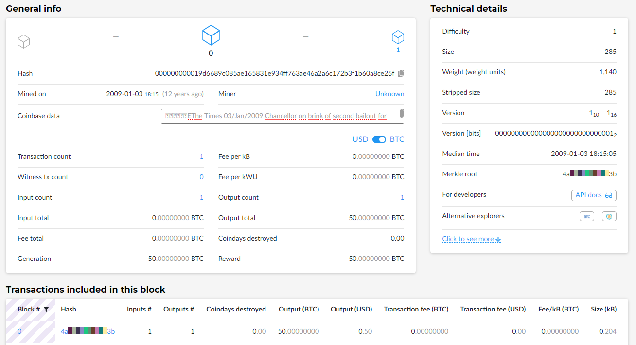 Además del titular del legendario periódico, pasó a la historia el hecho de que en el bloque cero se procesaron los 50 primeros bitcoins de la red. Estas monedas digitales no han sido movidas y no se podrán mover en ningún momento. Esto, debido a una particularidad en la creación del código que no se sabe si fue intencionada o no.