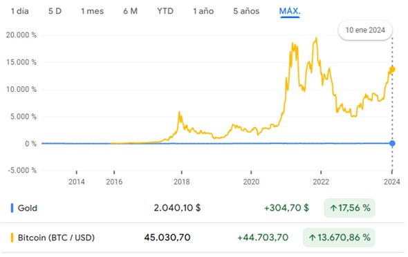 En conclusión, la revalorización del oro ha sido significativa y continua a lo largo de los años, mientras que el valor del Bitcoin es altamente variable y más arriesgado, aunque ha experimentado una revalorización increíblemente alta en su corta existencia.