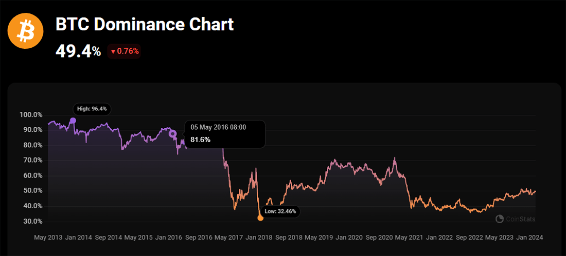 Al tener un dominio de mercado cercano al 50%, según datos de Coinstats, Bitcoin es el centro de gravedad de todo el mercado. Eso quiere decir que cualquier movimiento de su precio se expresará inevitablemente en el resto de las monedas. Uno de los elementos cruciales en el precio de BTC es el halving, ya que el mismo es la pieza fundamental de todo el proceso cíclico del valor de esta criptomoneda.