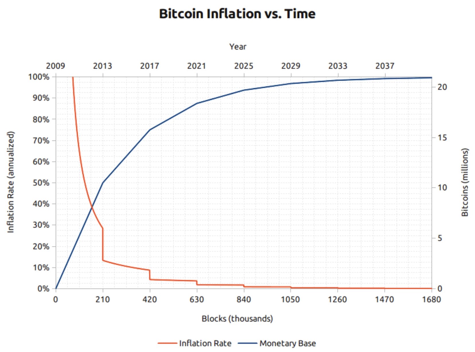 Con ello, el diseño original de Bitcoin trata de extender al máximo el suministro de nuevas criptomonedas, reduciendo paulatinamente la oferta y favoreciendo la escalada de precio. Según esta métrica, el último Bitcoin será minado en el año 2140, tras lo cual la emisión de 21 millones de tokens habrá concluido.