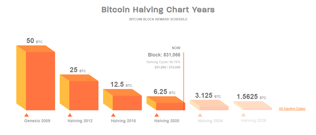 Básicamente, se trata de un evento automático que se produce en la red cada cuatro años o cada 210.000 bloques. El mismo consiste en recortar las recompensas de los mineros en un 50% por cada bloque válido que procesen. Por ejemplo, ahora la red libera a las carteras de los mineros 6.25 BTC cada vez que ejecutan un bloque. Luego del halving de abril, esa recompensa bajará a 3.125 BTC.