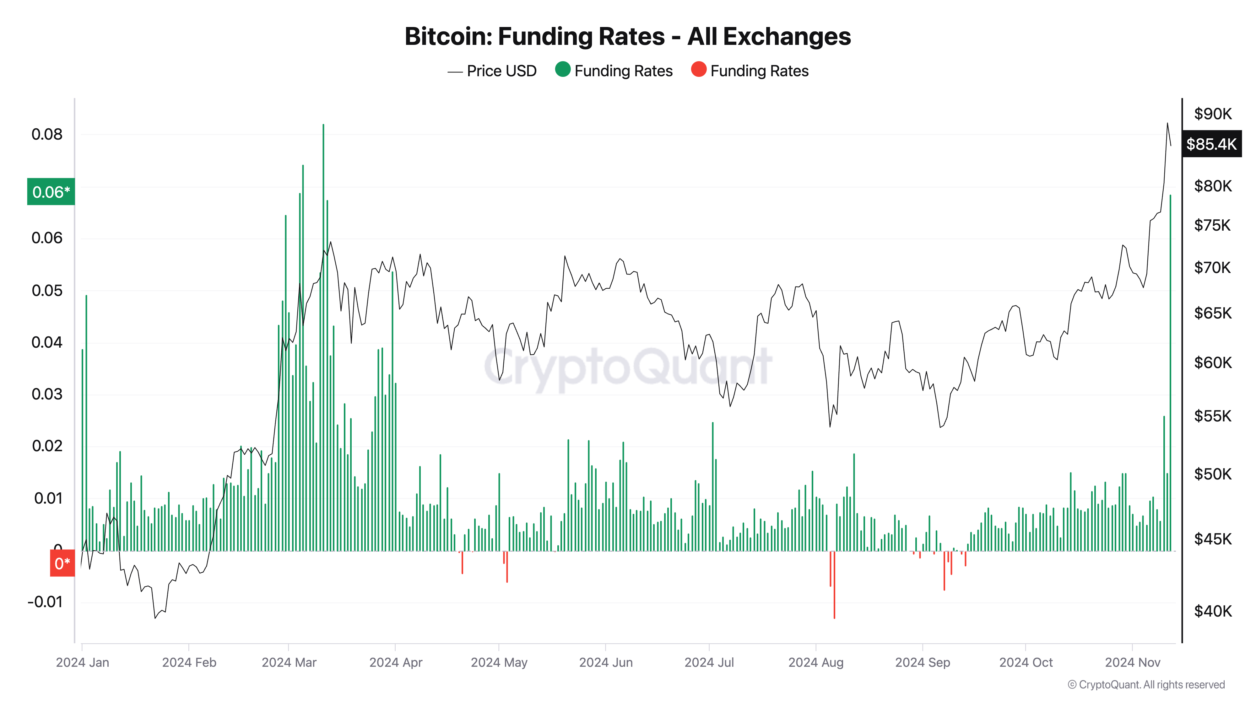 El explosivo interés abierto de Bitcoin es un factor clave que podría impedir su ascenso a la marca de los 90,000 dólares a corto plazo. Según los datos de CryptoQuant, durante la última semana, el mercado de futuros ha visto una adición de más de 16 mil millones de dólares en posiciones abiertas.