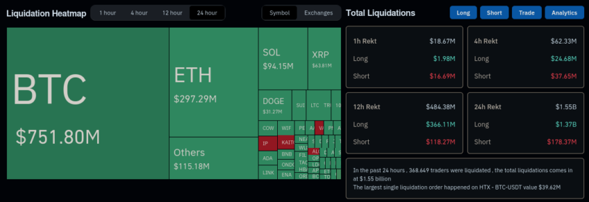 Al momento de la publicación, el precio de Bitcoin se ubica en 88,650 dólares tras caer 6% en las últimas 24 horas, según datos de BeInCrypto. En un panorama más amplio, el mercado cripto ha experimentado liquidaciones de casi 1,6 mil millones de dólares, siendo Bitcoin y Ethereum las criptomonedas más afectadas.