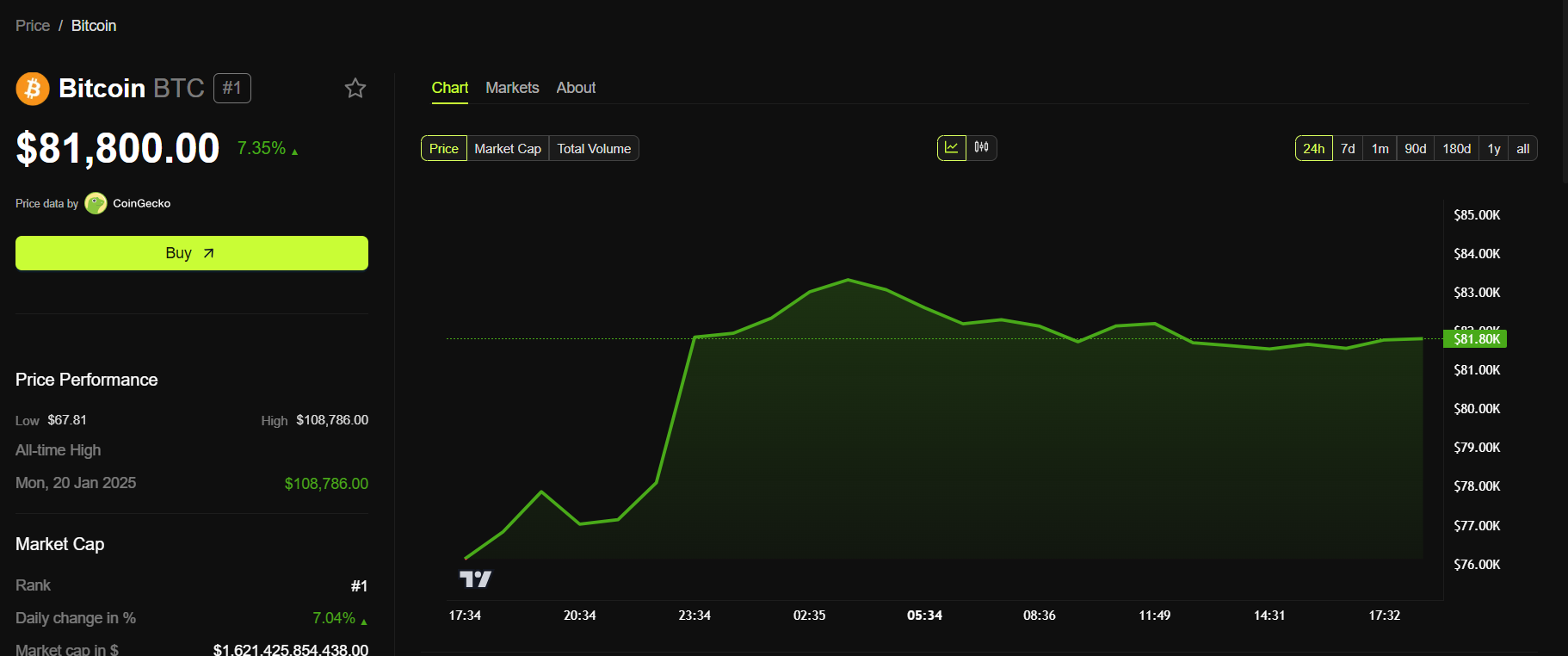 Las cifras del IPC más bajas de lo esperado podrían darle a Bitcoin un impulso muy necesario. Al momento de la publicación, Bitcoin se negociaba a 81,800 dólares, con un aumento de más del 7% en el gráfico de 24 horas.