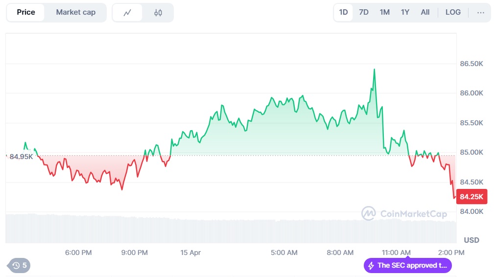 BTC cambia de manos en torno a los USD $84.500 al momento de publicación de este artículo, con una modesta pérdida de % en las últimas 24 horas y un aumento de 9% en la última semana. El activo digital se negoció dentro de un rango estrecho de USD $84.350 a USD $86.429 en el último día, reflejando una trayectoria de mercado modesta pero positiva.