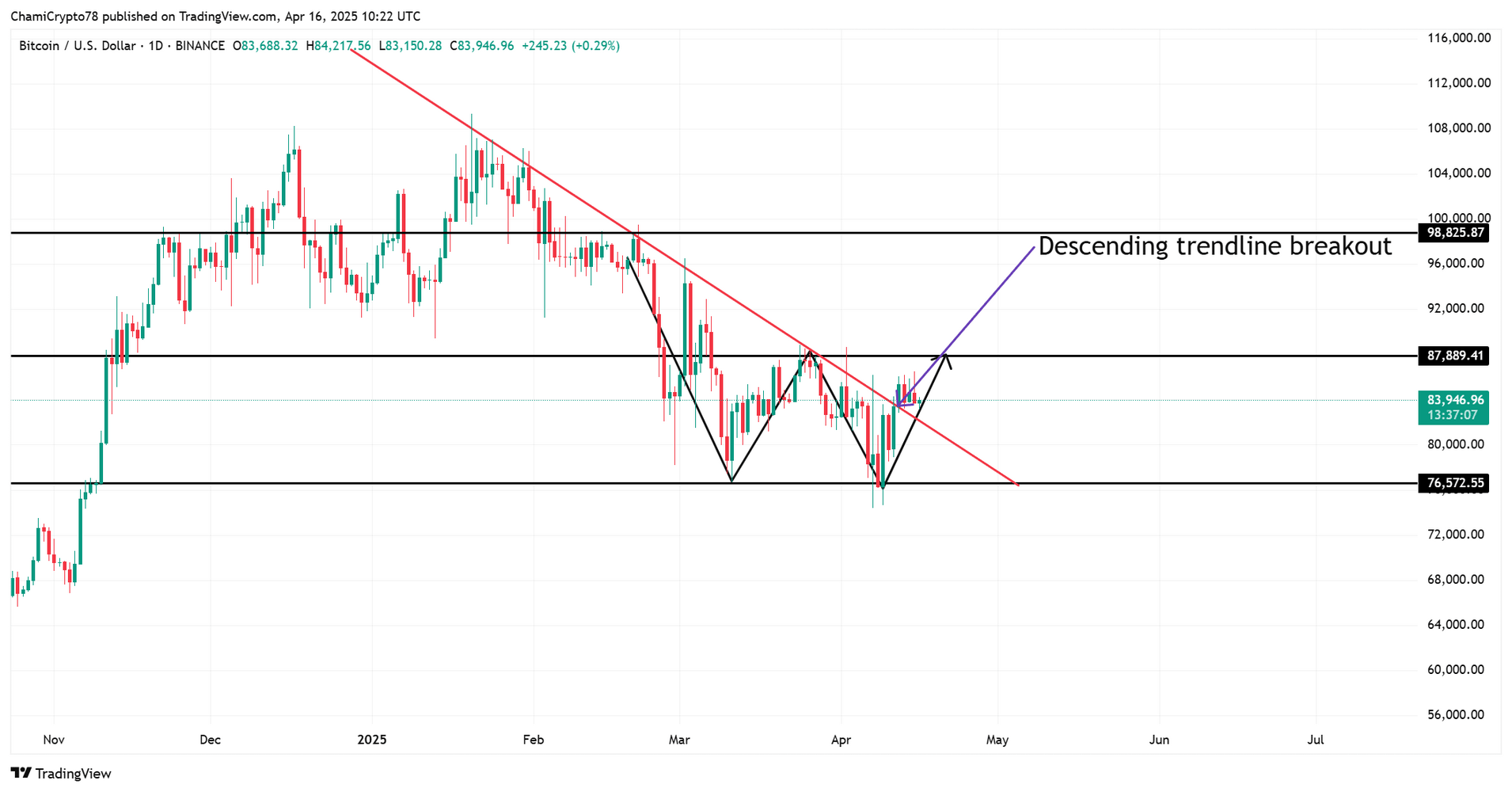 Además, en las últimas sesiones se ha observado un patrón de doble suelo, lo que refuerza el potencial alcista. BTC cotiza ahora entre el soporte de 76.572 dólares y la resistencia de 87.889 dólares, ambos niveles clave a corto plazo.