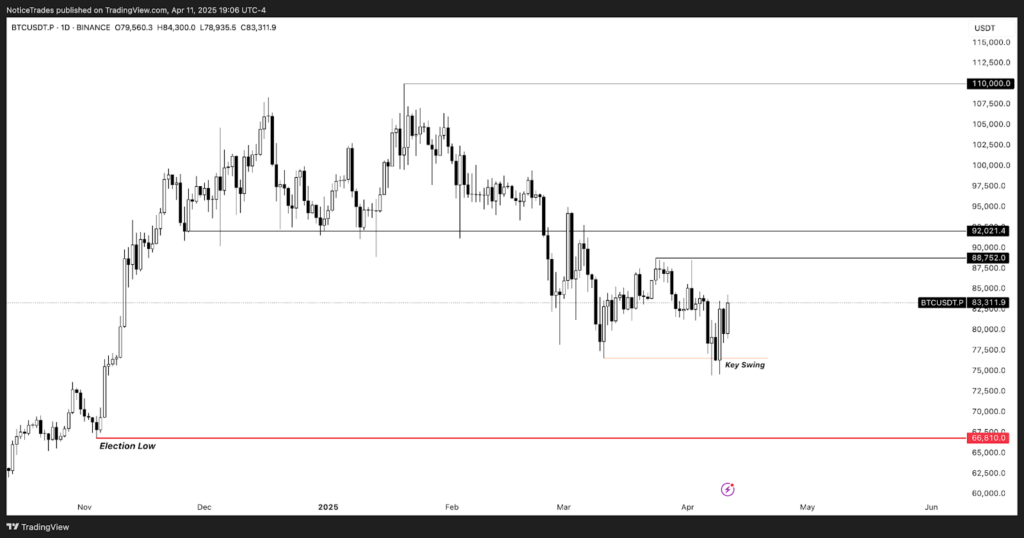 Y con eso, Bitcoin ha dado un buen golpe. Aún no lo llamaría un home run, pero su fuerza relativa, manteniendo por encima de los 80 000 durante este período de incertidumbre geopolítica, con caídas de acciones, bonos y el dólar estadounidense, debería decirnos algo.