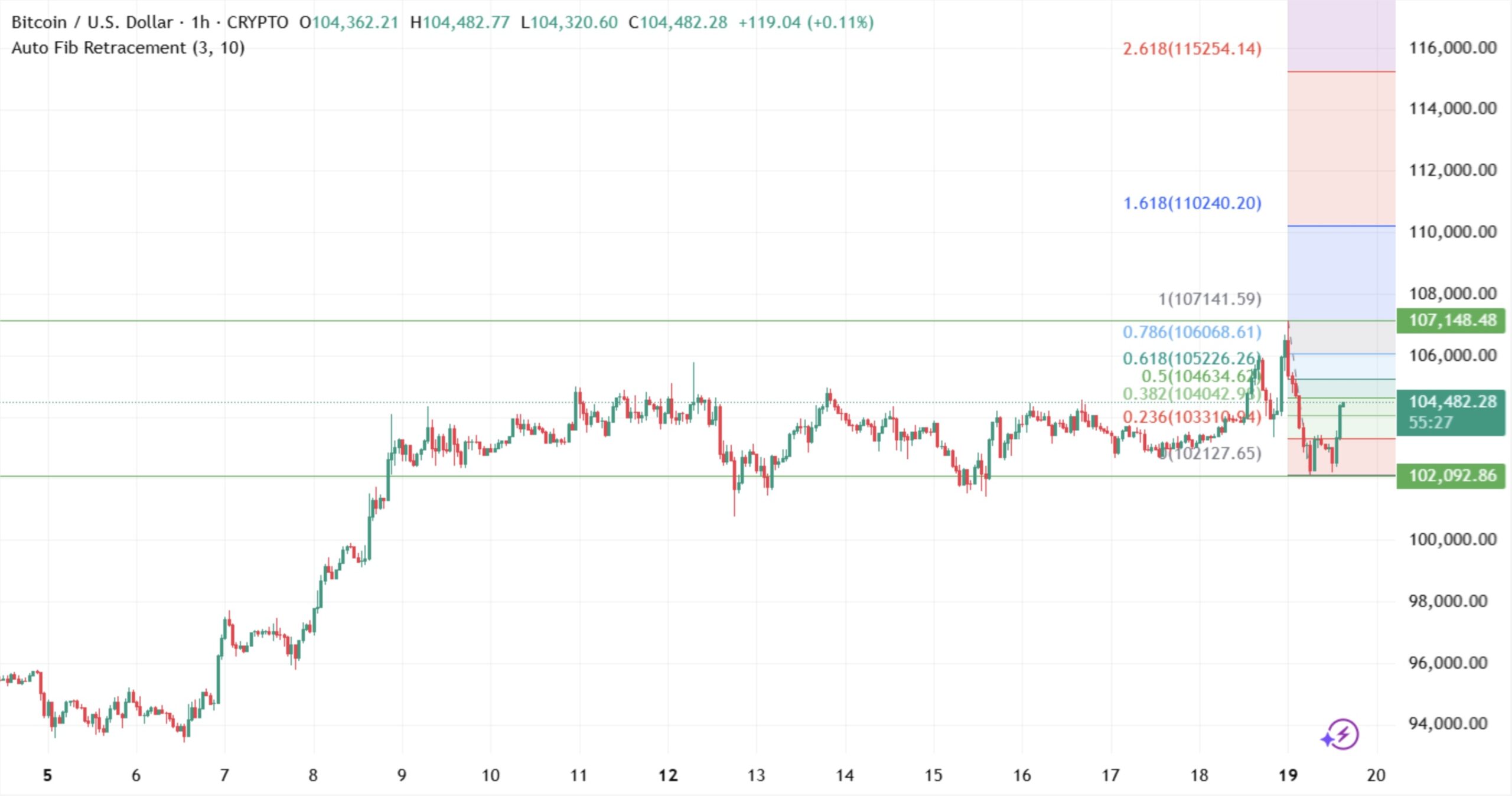 Un fuerte repunte desde el soporte de 102,000 dólares en los gráficos facilitó la formación de un patrón clásico alcista. Actualmente, Bitcoin está superando consistentemente el nivel de Fibonacci del 0.5 (104,634 dólares), intentando establecerse por encima de la región del 0.618 (105,226 dólares). Si los compradores rompen decisivamente la extensión 1.0 de Fibonacci en 107,141 dólares, los objetivos de 110,240 dólares y 115,254 dólares pueden volverse alcanzables.