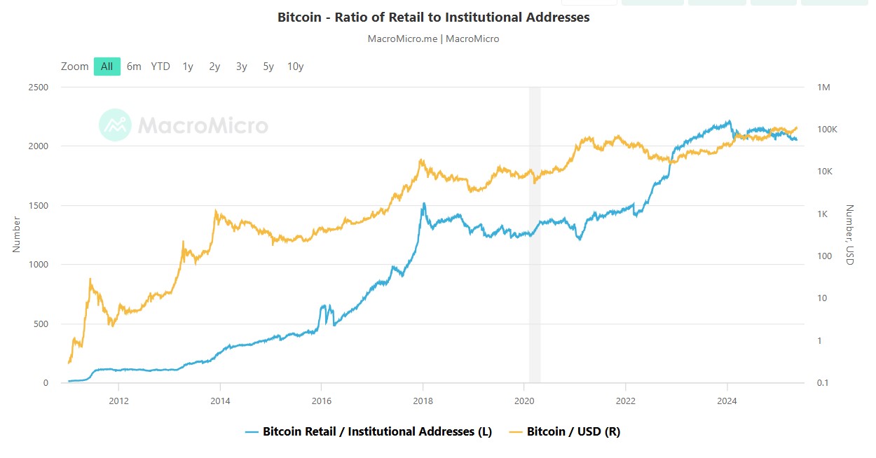 Esto, en otras palabras, implica que los inversores minoristas, que ascienden a más de 200 millones de usuarios, están buscando una mayor participación en el mercado, ubicando espacios entre quienes tienen fondos asignados a BTC.