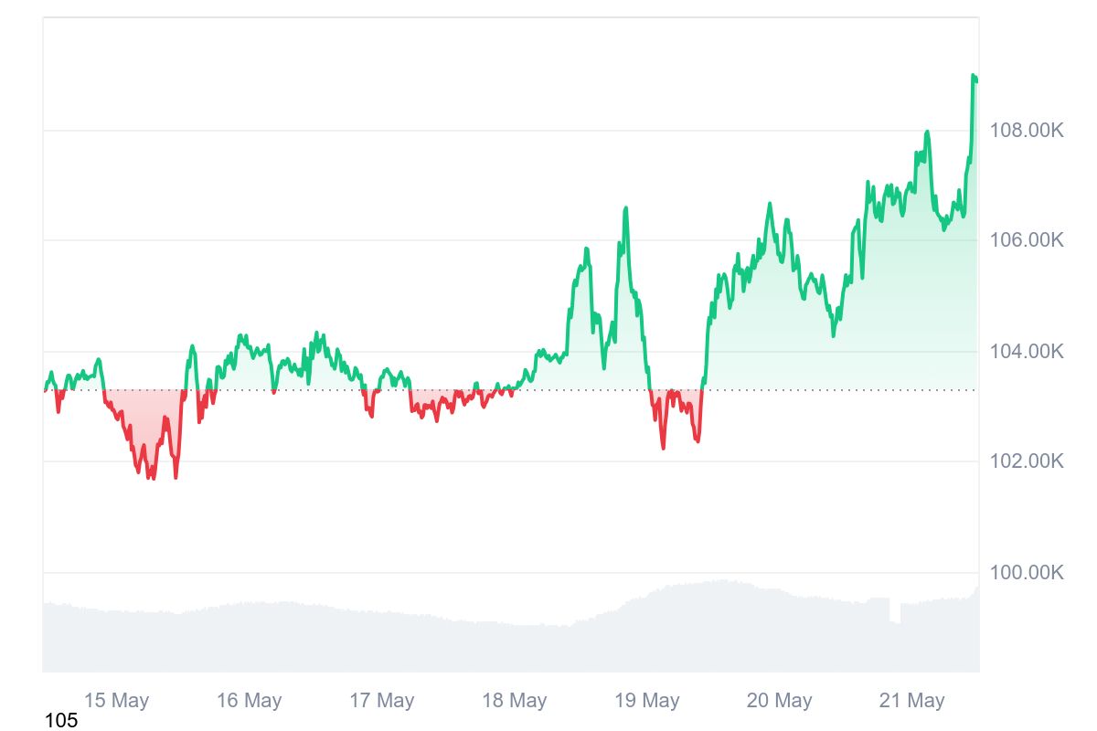 En cualquier caso, el precio de Bitcoin establece su segundo mejor precio de la historia y supera los $109k por primera vez desde enero. Según datos de CoinMarketCap, el rendimiento de la moneda digital en 24 horas es de +3.48% y de +5.40% en una semana. Al momento de cierre de esta nota, el BTC se repliega hasta $108.600 tras una evidente recogida de ganancias por parte de las ballenas.