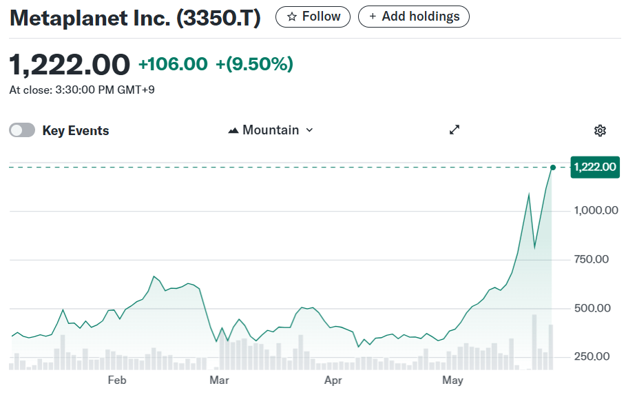 Las acciones de Metaplanet continúan al alza gracias a Bitcoin