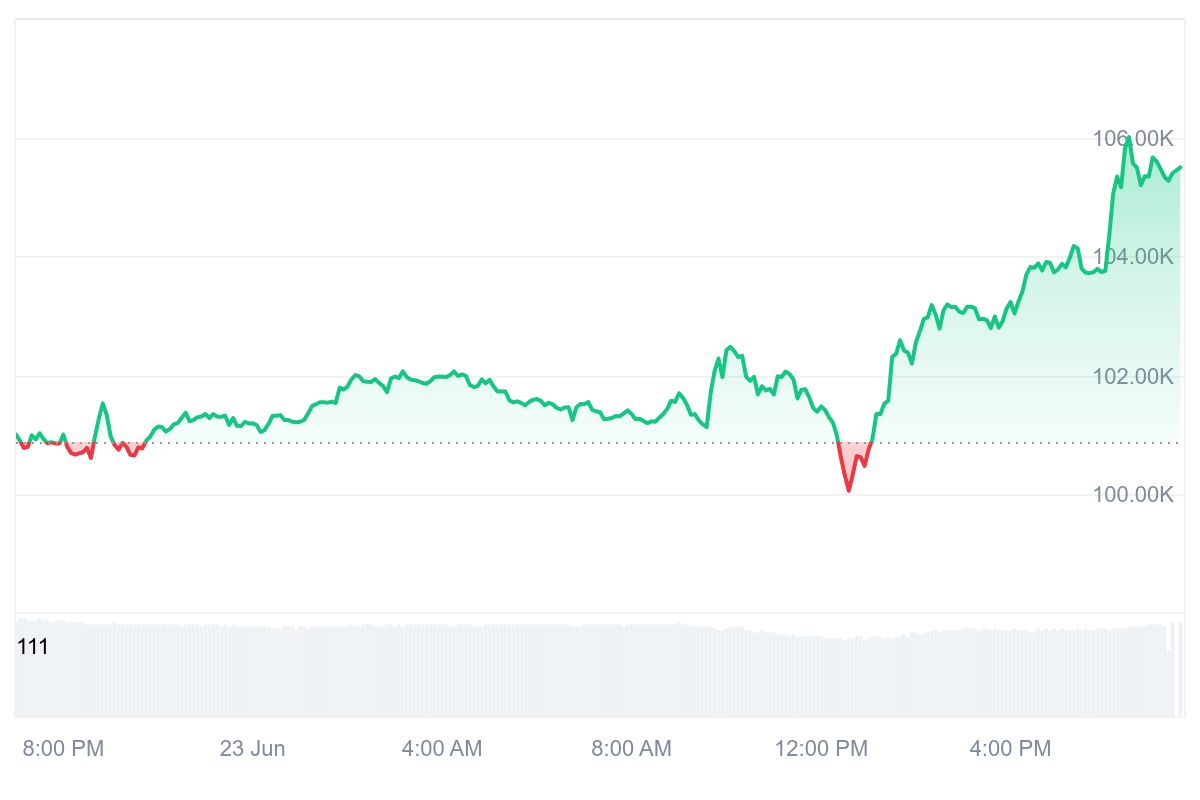 Al principio de una semana que parecía caótica por las tensiones en Medio Oriente, la paz se presentó como una opción. El presidente de los Estados Unidos, Donald Trump, anunció un alto al fuego entre Irán e Israel, lo cual podría poner fin a las hostilidades. Tras el anuncio, el precio de Bitcoin reacciona con una fuerte subida.