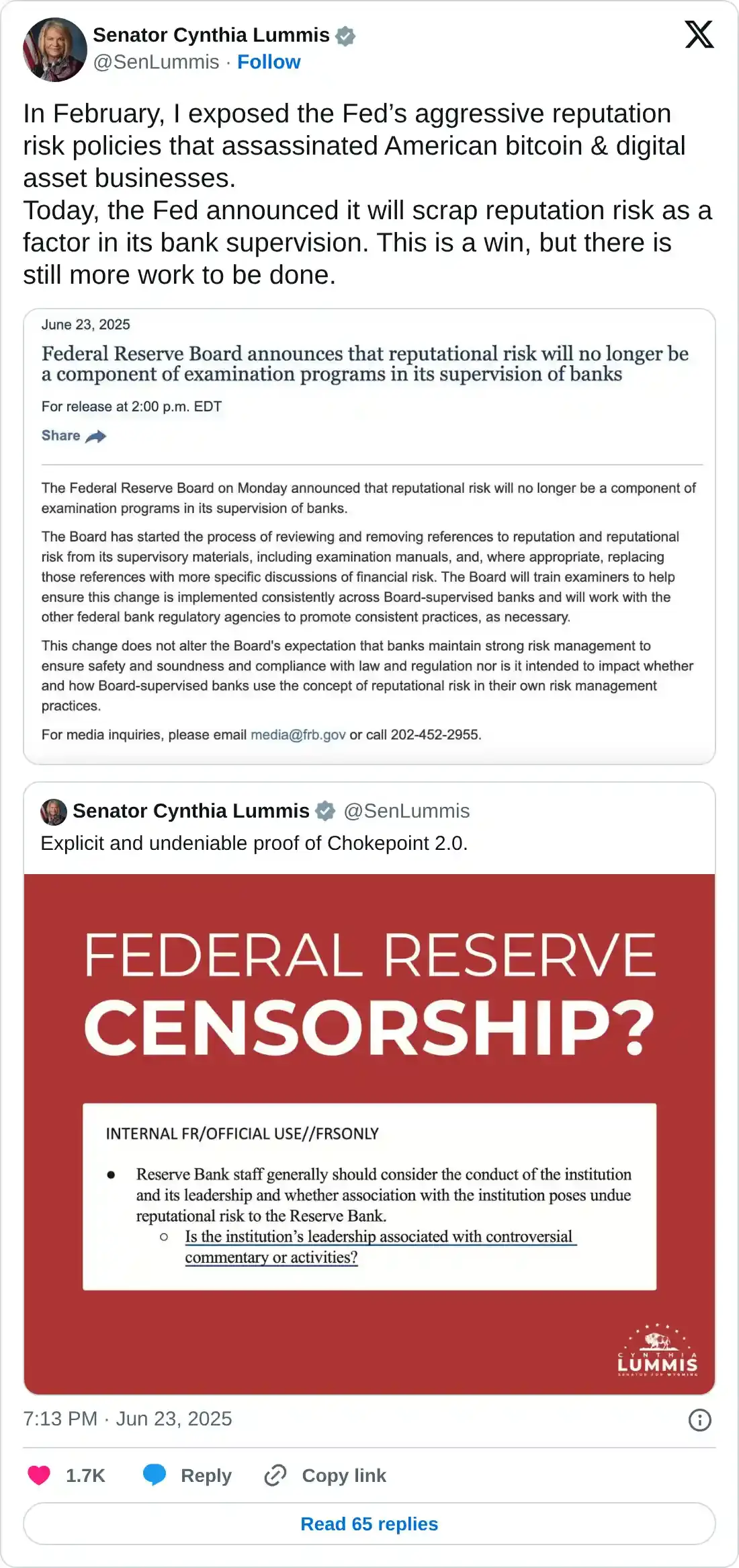 Esta noticia añadió combustible a la recuperación en curso del Bitcoin, ya que el "riesgo reputacional," también conocido comúnmente como Operación Choke Point 2.0, había impedido anteriormente a los bancos proporcionar servicios de custodia para activos criptográficos y servicios financieros a empresas de activos digitales.