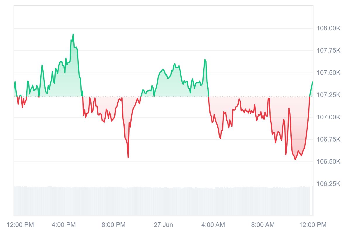 Al momento de la redacción, BTC cotiza a $107.381 por unidad, según datos de CoinMarketCap. Su rendimiento en las últimas 24 horas es levemente positivo, mientras que en la última semana supera el +3%.
