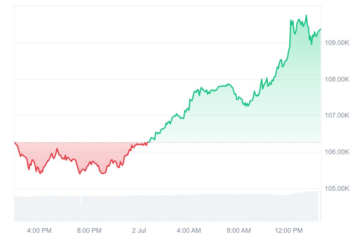 Al momento de redactar esta nota, la mayor de las criptomonedas experimenta un repunte de +3.25% en 24 horas y de +1.76% en una semana. De este modo, el precio de Bitcoin sube hasta los $109.383 dólares por moneda, según datos del portal CoinMarketCap. Otras monedas importantes como ETH, SOL y BNB también mostraron importantes subidas en el mismo plazo.