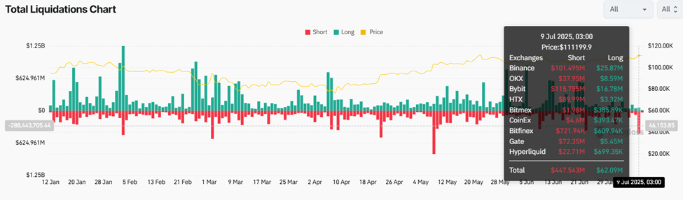 Según datos de Coinglass, más de 114,500 traders fueron liquidados en las últimas 24 horas, sumando pérdidas de 515,34 millones de dólares.