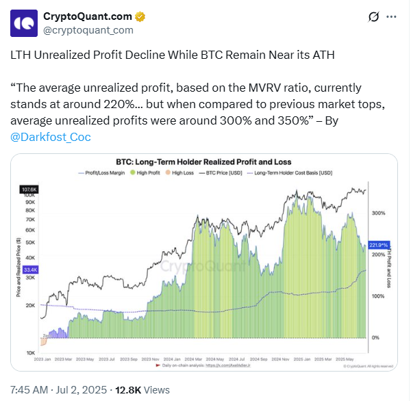 Según Adler, esto indica que los holders no están vendiendo agresivamente en el rally para obtener ganancias. Esto, dice, refuerza el soporte técnico y fundamental para precios más altos.