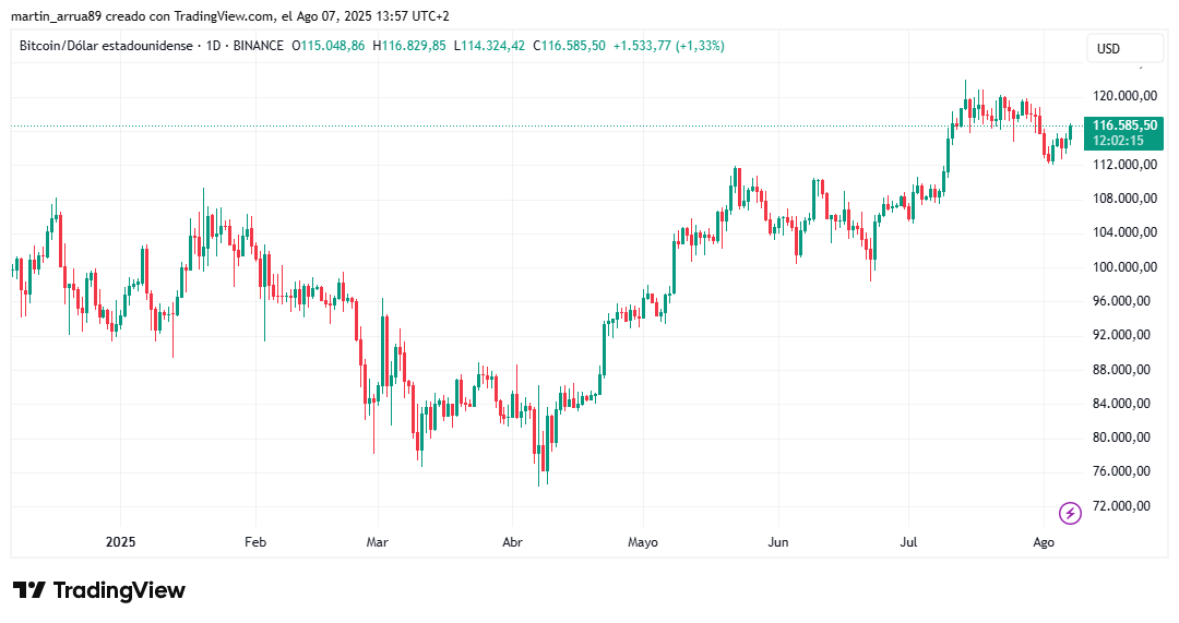 Sus palabras generaron un impulso en bitcoin, que al momento de la publicación de esta nota cotiza nuevamente por encima de 116.500 dólares.