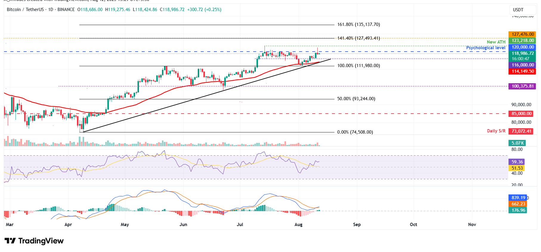 Si el BTC cierra por encima del nivel psicológico de 120.000$ de manera diaria, podría extender el rally hacia su máximo histórico de 123.218$. Si se produce un cierre exitoso por encima de este nivel, el BTC entraría en modo de descubrimiento de precios con los alcistas apuntando al nivel psicológico de 125.000$.