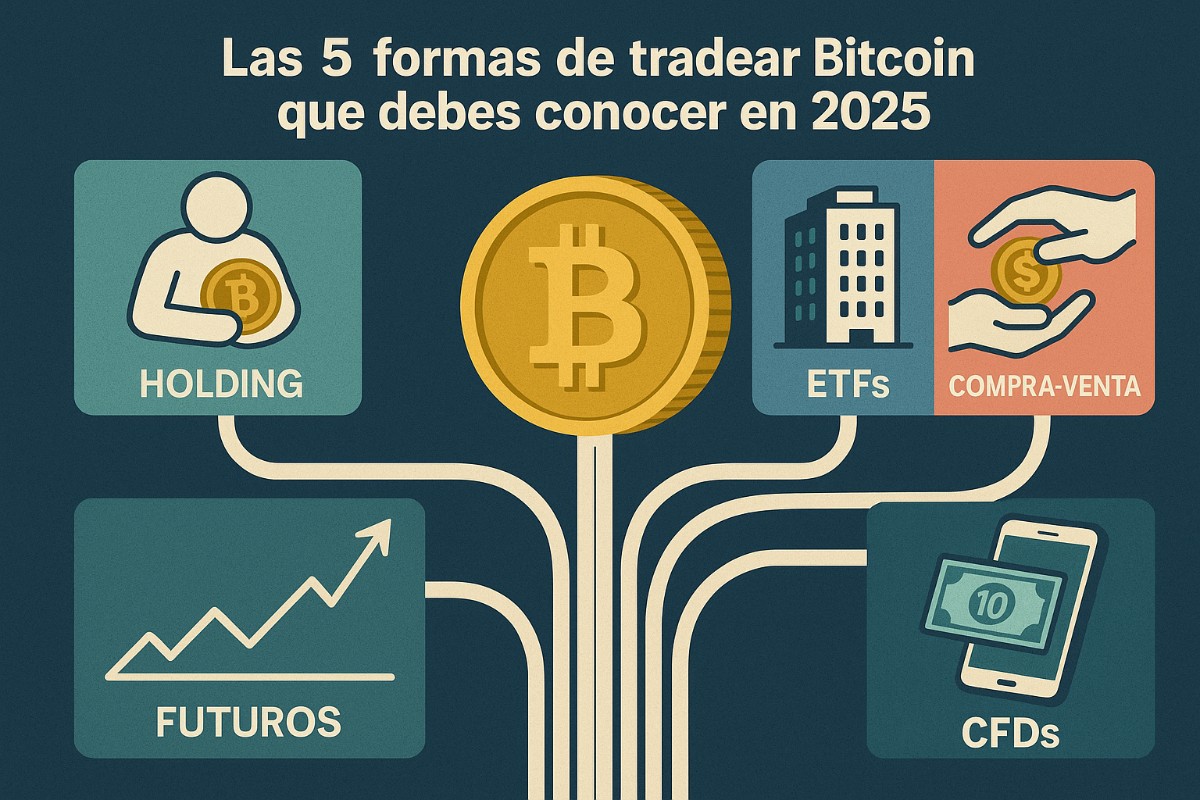 Granados resumió el panorama en cinco formas clave de tradear Bitcoin, cada una con ventajas, riesgos y un perfil de inversor asociado. Estas son las más importantes que todo trader debería conocer.