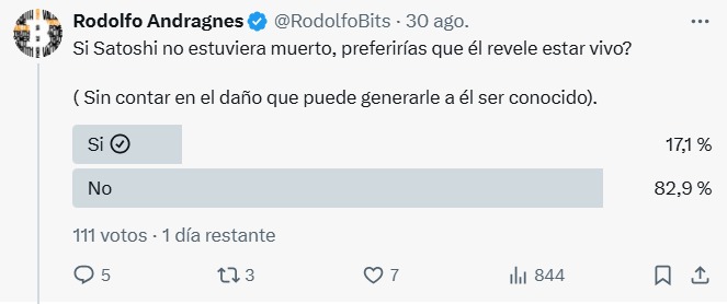 Según Andragnes, esa posibilidad constituye una amenaza latente para el ecosistema. Por ello, considera preferible que, si el arquitecto de bitcoin sigue con vida, mueva sus fondos cuanto antes y que el impacto llegue de inmediato, en lugar de que permanezca como una sombra permanente. «Si Satoshi está vivo y algún día decide mover sus bitcoin, lo mejor es que lo haga ahora», afirmó.