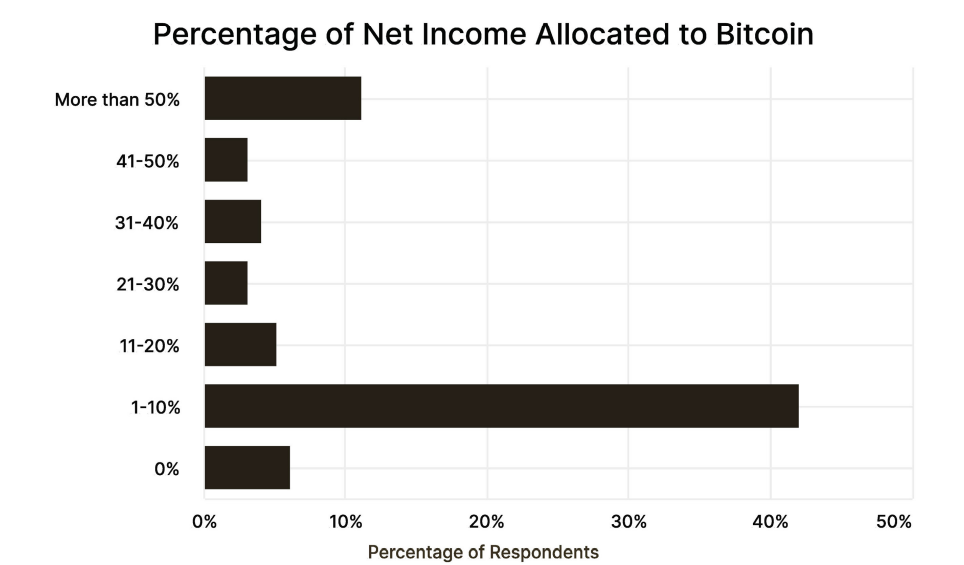 El informe explicó además que muchas empresas están asignando mucho más que un hipotético 1% de sus fondos a Bitcoin. Las empresas que utilizan River asignan un promedio del 22% de sus ingresos netos, según una encuesta realizada en julio de 2025. La asignación mediana es del 10%, lo que indica una creciente adopción a nivel base.