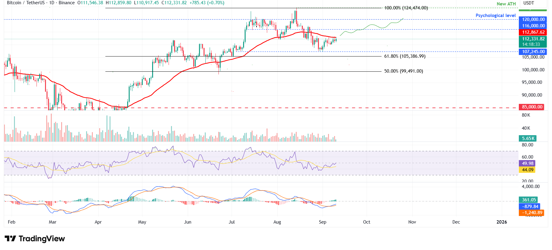 El Bitcoin (BTC) cotiza al alza, acercándose a un nivel de resistencia clave en 112.800$ en el momento de escribir estas líneas el miércoles. Un cierre decisivo por encima de este nivel señalaría un posible repunte por delante. La próxima publicación de los datos del Índice de Precios de Producción (IPP) de EE.UU. para agosto, más tarde en el día, podría traer nueva volatilidad a la criptomoneda más grande por capitalización de mercado.