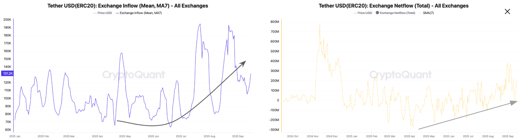 Aparte de esto, el capital seco necesario para un rally de criptomonedas está en expansión, con depósitos totales de USDT en los intercambios creciendo a medida que los grandes inversores se posicionan antes de la decisión de la Fed.