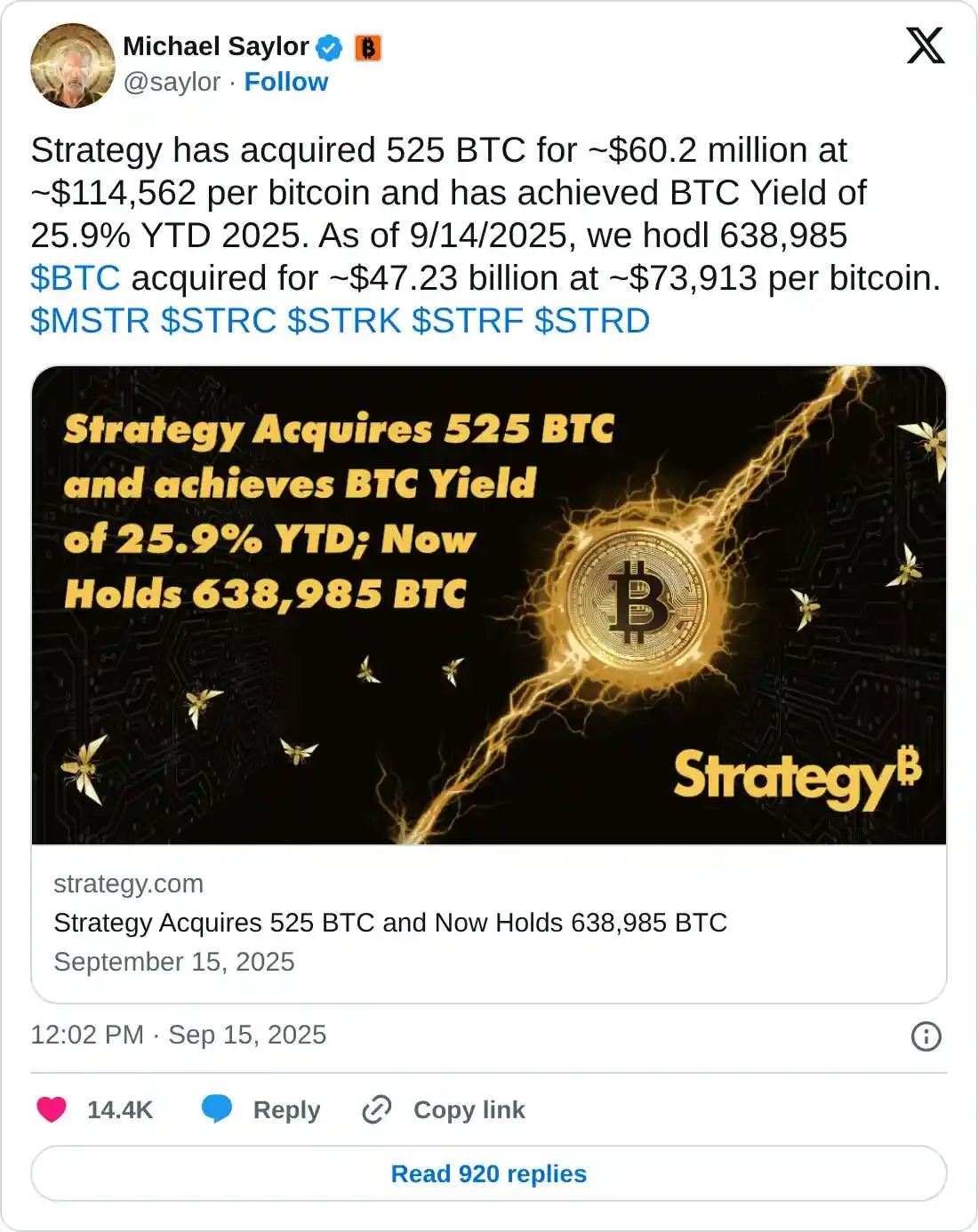 En el ámbito corporativo, la demanda continúa creciendo, ya que el cofundador de Strategy, Michael Saylor, anunció en la red social X el lunes que su empresa había añadido 525 BTC a su reserva, llevando el total a 638.985 BTC. Durante el mismo período, otras empresas, incluyendo Capital B y Prenetics, también añadieron un total de 88.6 BTC.