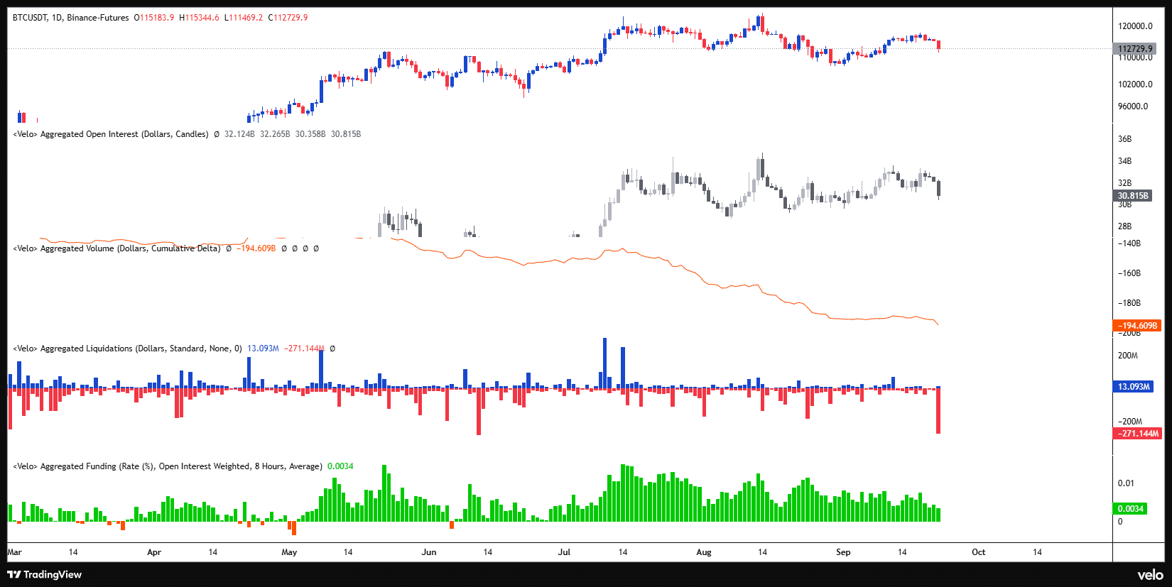 - Análisis derivados: Open interest estable, funding positivo pero en retroceso, liquidaciones masivas del lado largo.