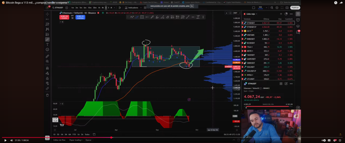 El reconocido analista de criptomonedas Jaime Merino, mejor conocido por su canal de YouTube TradingLatino, el mayor canal en español sobre trading cripto, ofreció un análisis detallado sobre Bitcoin y algunas altcoins como ETH, XRP, y ADA, durante su streaming del 24 de septiembre de 2025.