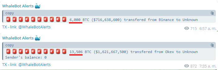 Según datos de WhaleBot Alerts, el viernes y sábado se destacaron en términos de envíos fuera de los CEX. Entre ellos se destaca uno de 6.000 bitcoins desde Binance y otra gigantesca salida de 13.506 BTC desde OKX. Desde Coinbase también se reportaron salidas fuertes como una de 2.000 BTC. El sábado se mantuvo esta tendencia con otra salida masiva de 5.000 bitcoins desde Binance.