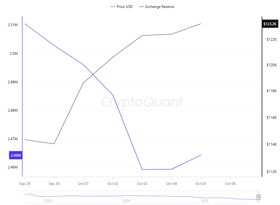 Por otra parte, la tendencia decreciente de las reservas de BTC en los exchanges continuó esta semana. El lunes, el total de monedas en los exchanges arrancó con 2.510.470 bitcoins y este domingo se cuentan 2.465.007 bitcoins, según CryptoQuant.
