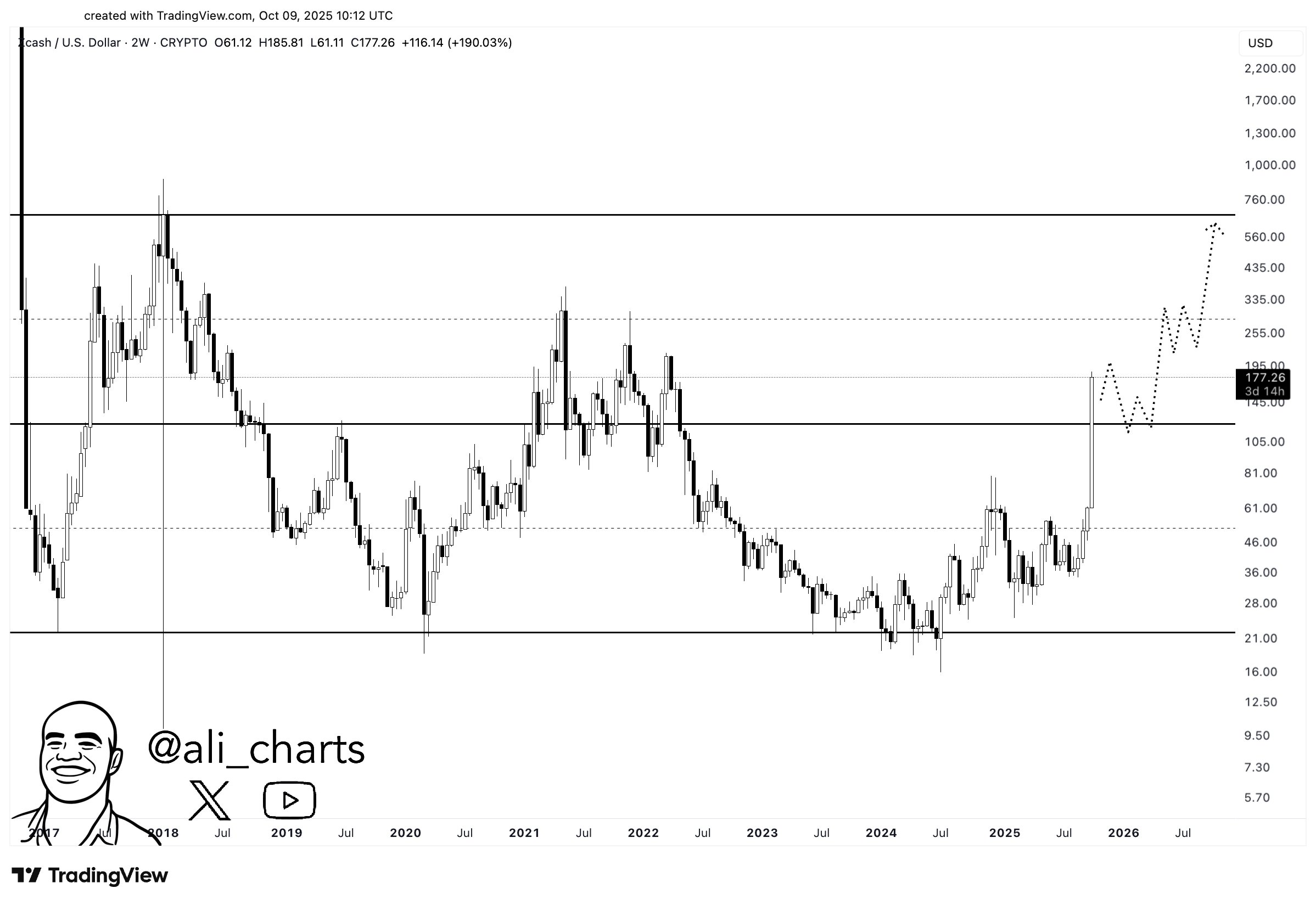 Volviendo a ZEC Coin, Ali Martinez enfatiza la importancia del nivel de resistencia de $290. Si ZEC Coin logra cerrar por encima de este umbral, podría alcanzar su pico histórico en $650.