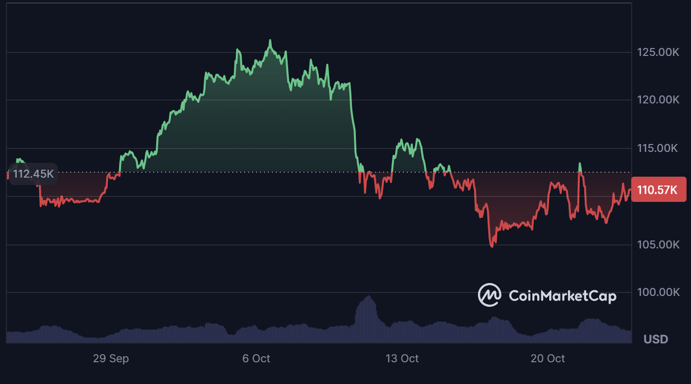 A comienzos de octubre, la criptomoneda líder marcó un nuevo máximo histórico (ATH) de $126.200, pero días después sufrió un desplome abrupto hasta los $102.000, en el llamado viernes negro del mercado cripto. Desde entonces, la dinámica se ha estabilizado, pero sin mostrar aún una dirección definida.