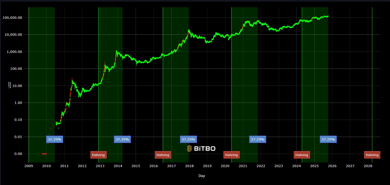 «Hasta que no se demuestre lo contrario, ese comportamiento se va a repetir», dice a este medio informativo. Según su análisis, si para 2026 el precio de bitcoin no ha corregido entre 60% y 70%, entonces «definitivamente se puede considerar que fue el fin de los ciclos post halving».