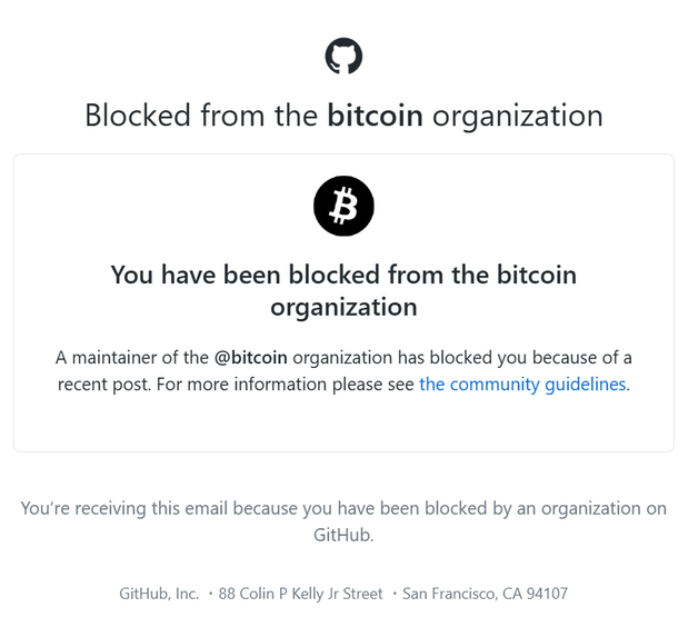 He sido bloqueado del GitHub de Bitcoin… ¿por el crimen de… algo? Publiqué que parecen moverse rápido para apresurar este cambio y señalé que el mantenedor del DNS seed actualmente no puede comentar (según el hilo citado) … y estoy bloqueado. Sin advertencia, nada.
