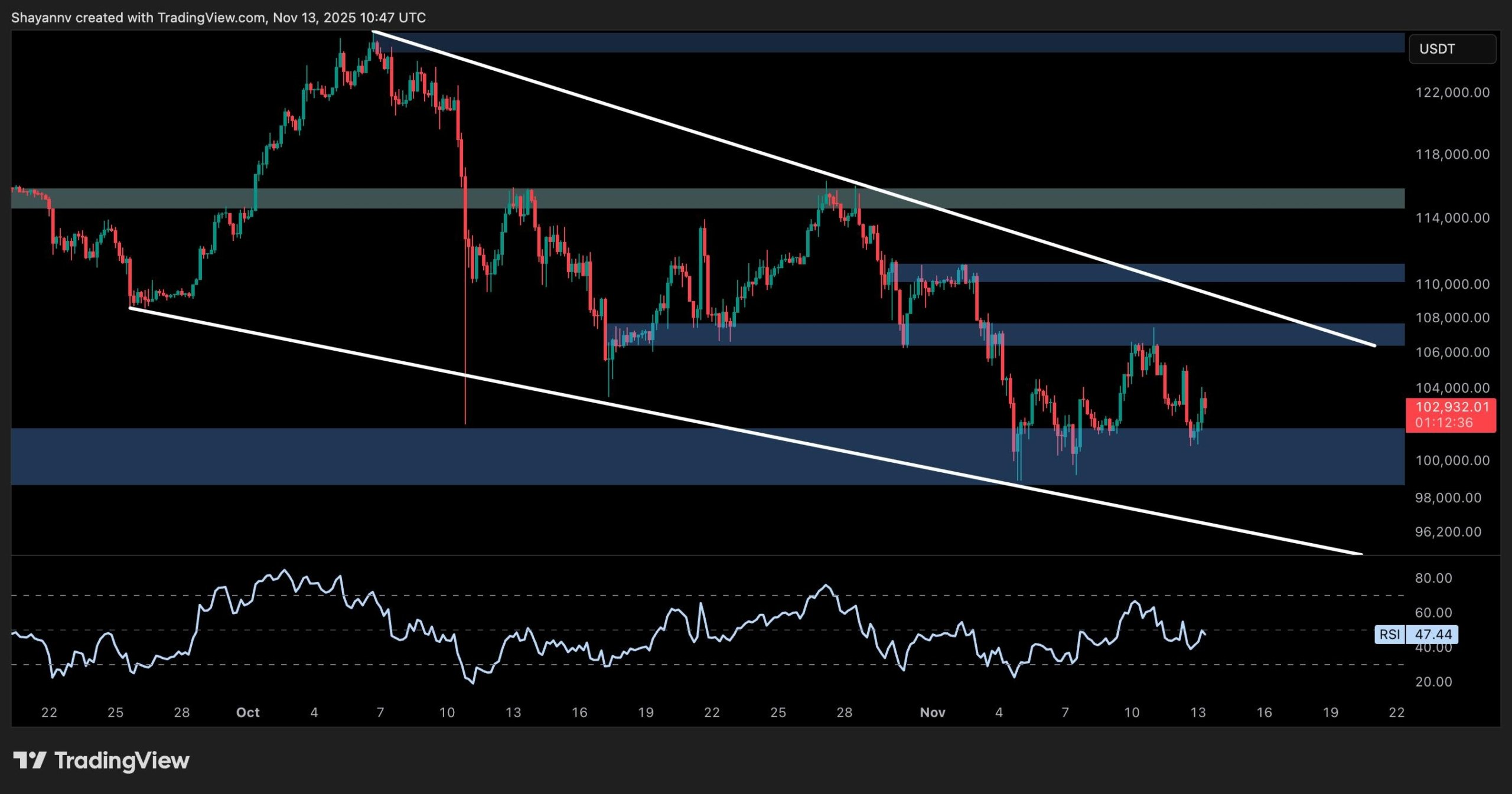El Bitcoin se encuentra actualmente rondando los $102.600 después de un inicio de noviembre volátil. Si bien la acción del precio sigue siendo irregular, aún respeta los niveles estructurales clave a pesar de las fuertes liquidaciones y los cambios en el sentimiento.