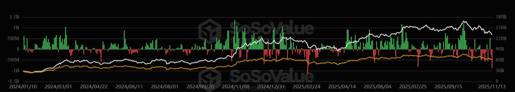 Estos instrumentos financieros reportaron ayer, 13 de noviembre una salida neta total de 869 millones de dólares, marcando su segunda peor jornada desde el inicio de sus operaciones en enero de 2024.