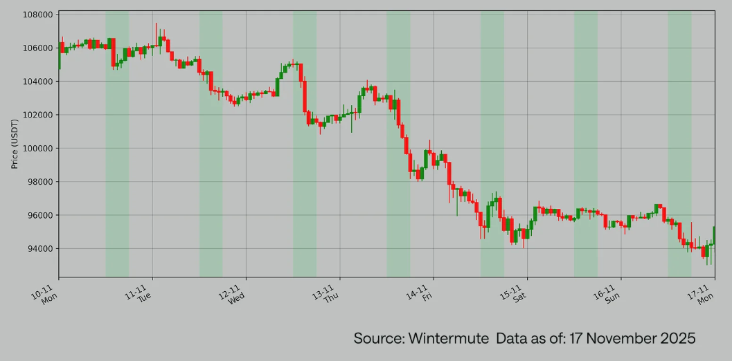 "Después de que Jerome Powell retrocedió en la idea de un recorte en diciembre, los operadores estadounidenses comenzaron a analizar las opiniones individuales de los 12 miembros del FOMC, lo que naturalmente ocurre primero en EE.UU. Como resultado, las mesas de EE.UU. comenzaron a reducir las probabilidades de recorte en diciembre," escribió Wintermute.