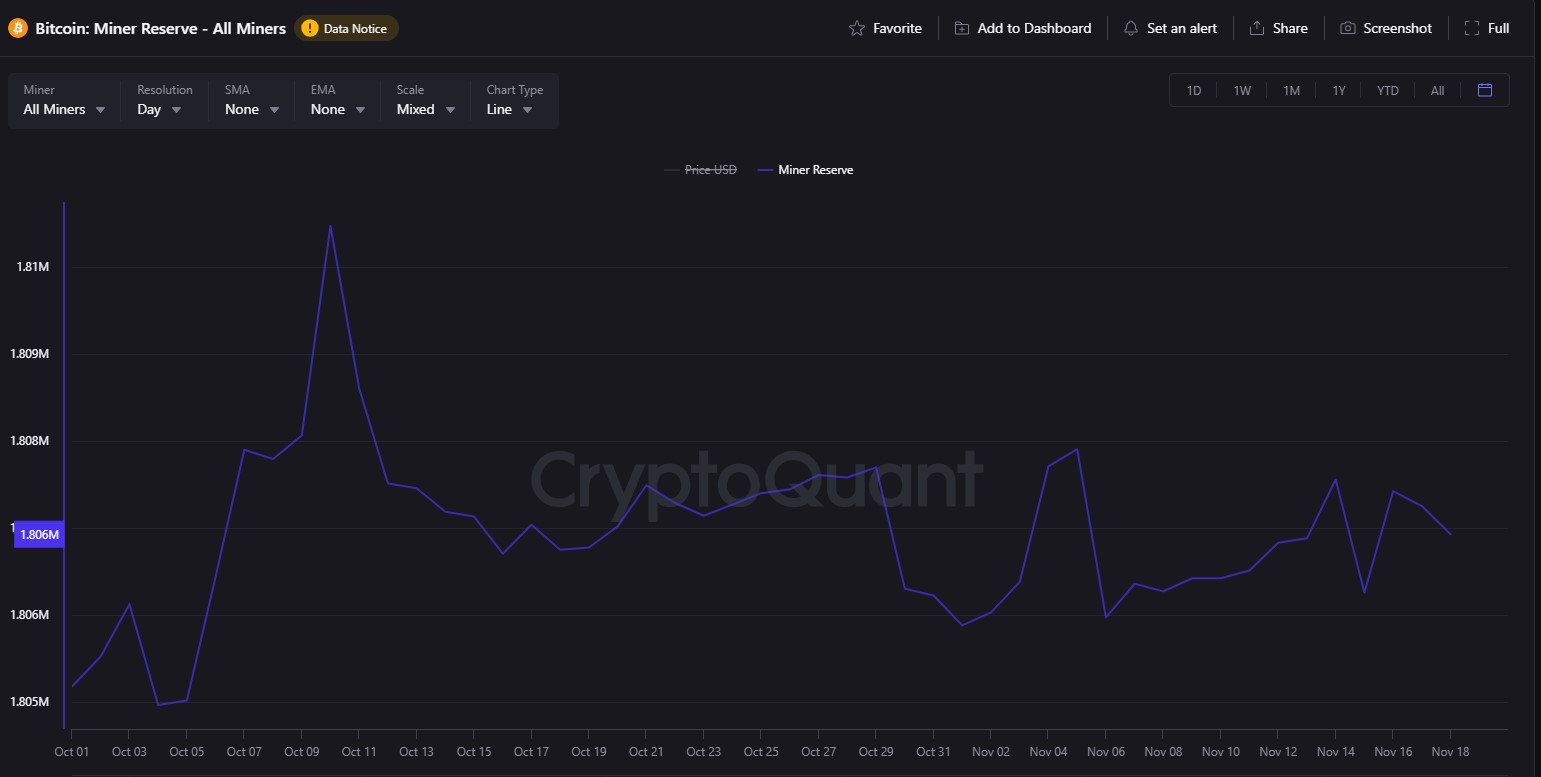 Efectivamente, la cantidad de BTC en las reservas de los mineros ha subido respecto al 1 de octubre. Pasaron de 1.805.173 BTC en aquel momento a 1.806.972 BTC al momento de escribir este reporte. Así se ve a continuación: