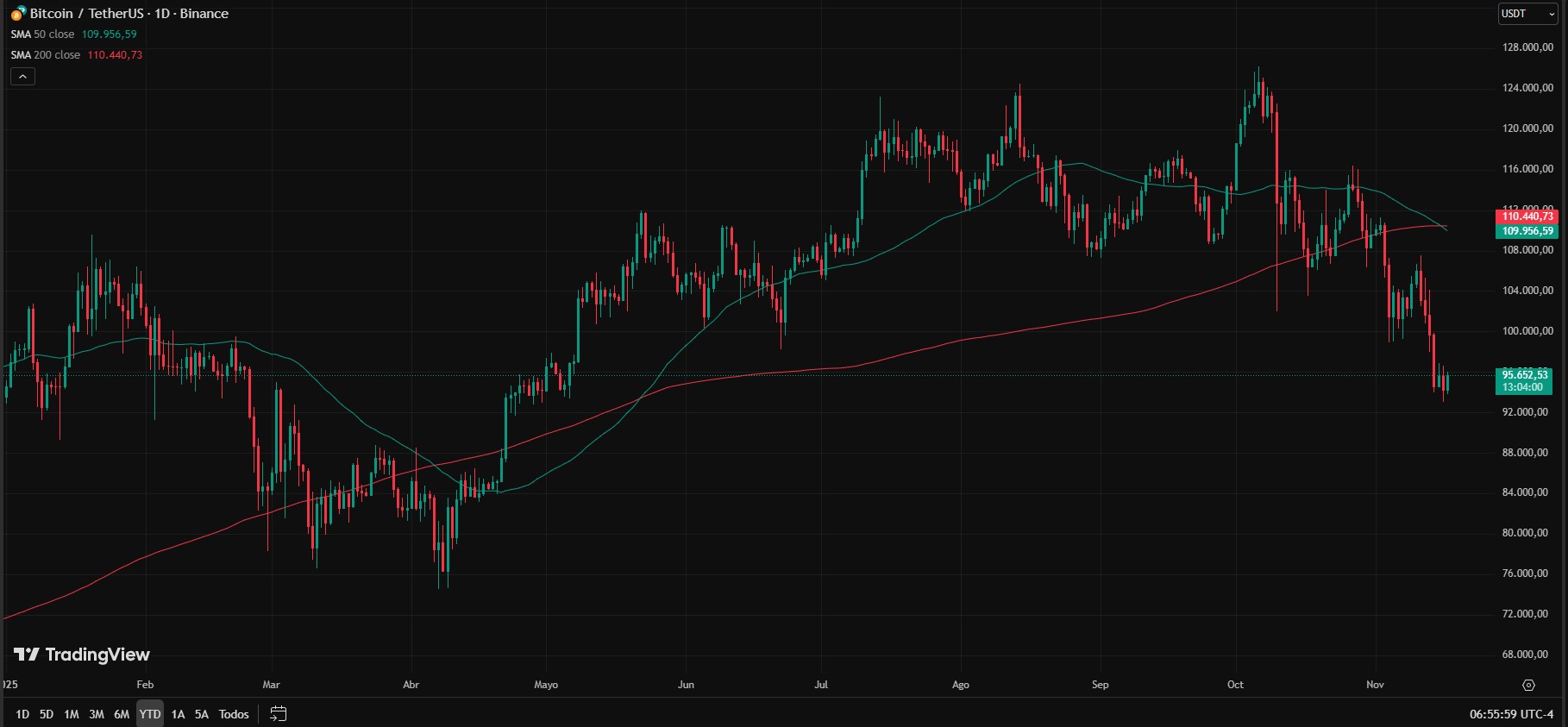 Bitcoin (BTC) atraviesa una corrección profunda tras retroceder desde los máximos de más de 126.000 dólares alcanzados hace poco más de un mes, hasta rondar los USD 90.000.