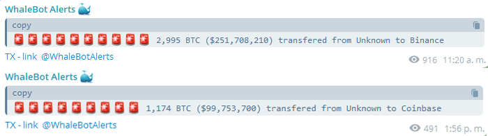Según datos de WhaleBot Alerts, el viernes fue una de las jornadas de mayor flujo de transacciones grandes de BTC hacia los exchanges. Entre los envíos más llamativos se cuentan tres de 2.995, 2.514 y 2.378 bitcoins hacia Binance. Otra transacción pesada de 2.026 BTC se movió hacia Bitfinex y otras dos de más 1.100 BTC hacia Gemini y Coinbase.