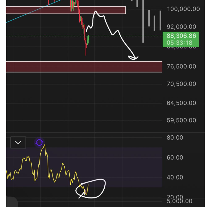 Roman Trading, conocido por sus pronósticos, había anticipado una caída antes de que Bitcoin cayera de la marca de los $80,000. Durante esos tiempos, BTC estaba muy por encima del reciente descenso de $40,000. A pesar de sugerir una caída continua, el analista que compartió el siguiente gráfico también predijo una pausa a corto plazo.