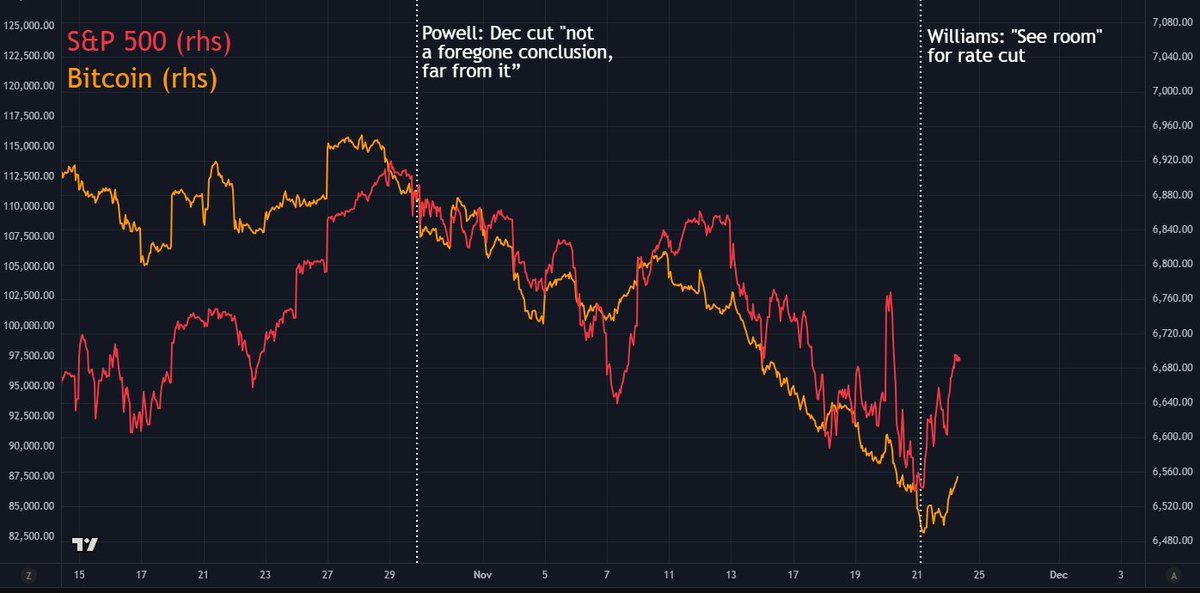 Los activos de riesgo estaban en una caída desde un recorte de tasas restrictivo en la reunión del FOMC de octubre. Powell indicó en diciembre que un recorte de tasas no es ‘una conclusión predeterminada, de hecho, una posibilidad lejana,’ y otros miembros de la Fed comenzaron a oponerse a la idea.